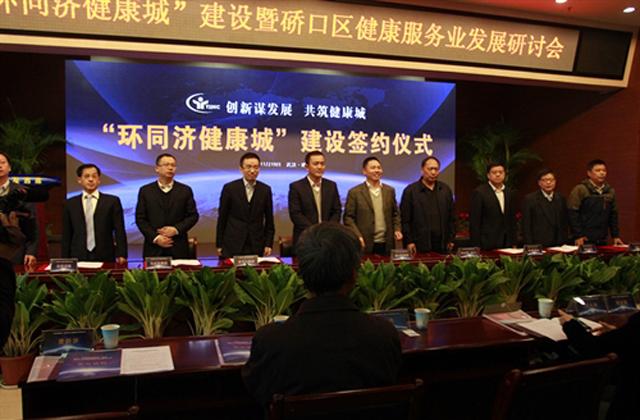 2015年11月10日,為探討發(fā)展健康服務(wù)業(yè)趨勢(shì),探索健康服務(wù)業(yè)發(fā)展新模式,武漢市衛(wèi)生和計(jì)劃生育委員會(huì)、華中科技大學(xué)同濟(jì)醫(yī)學(xué)院、同濟(jì)醫(yī)院、美年大健康、遠(yuǎn)大制藥,邁瑞醫(yī)療,人福醫(yī)藥等跨國(guó)企業(yè)丶國(guó)內(nèi)知名上市公司丶互聯(lián)網(wǎng)醫(yī)療的業(yè)內(nèi)精英齊聚一堂,共同探討 “環(huán)同濟(jì)健康城” 的建設(shè)及硚口區(qū)健康服務(wù)業(yè)的發(fā)展。