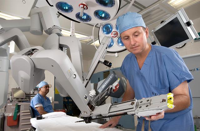 據(jù)專家介紹,達芬奇機器人現(xiàn)在主要應用于泌尿外科、甲狀腺、婦科腫瘤、胃腸、兒童外科等相關手術,原因在于這些地方的病癥不是牽涉到敏感神經(jīng),就是隱藏很深需要高精度的操作。以前列腺為例,位于尿道和膀胱接口處,部位很深,傳統(tǒng)的開放手術需要很大的切口,但機器人手術只需開幾個1cm左右的小孔,出血量也更少。事實上,在美國有超過90%的前列腺癌根治切除術都是由機器人輔助完成。