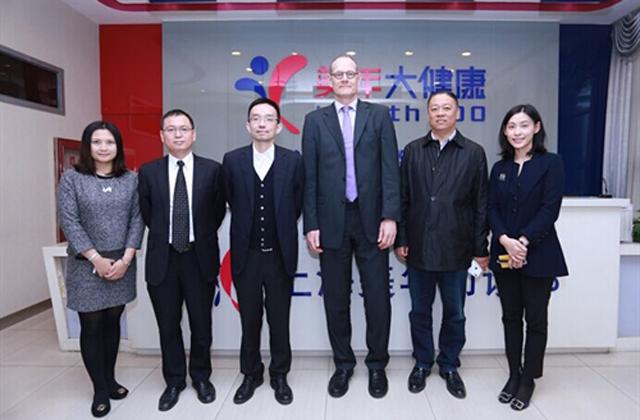 Accompanied by Madam Lan Cui, the CEO assistant of Onehealth 100 and Yagen Chen, one of Onehealth 100 branch hospital directors, Dr. Bernd Monta firstly visited the first branch of Onehealth 100---- Xiaomu Qiao Hospital. During the visit, Dr. Bernd Monta spoke highly of the service team, quality medical instrument and efficient service procedure of Onehealth 100. He was delighted at the contribution that Onehealth 100 has made to health care industry when he learned that Onehealth 100 provided body check service for 10 million consumers in China. Afterwards, Dr. Bernd Monta had a communication with Mr. Rong Yu, the chairman of Onehealth 100 and Mr. Ke He, Onehealth 100 CEO to discuss the opportunities between the two parties for a closer and deeper cooperation.
